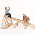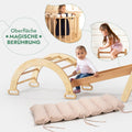5in1 Montessori Klettergerüst Set: Kletterdreieck mit Rutsche, Kletterbogen, Kletternetz und Kissen, für Kinder 1-7 Jahre – Beige